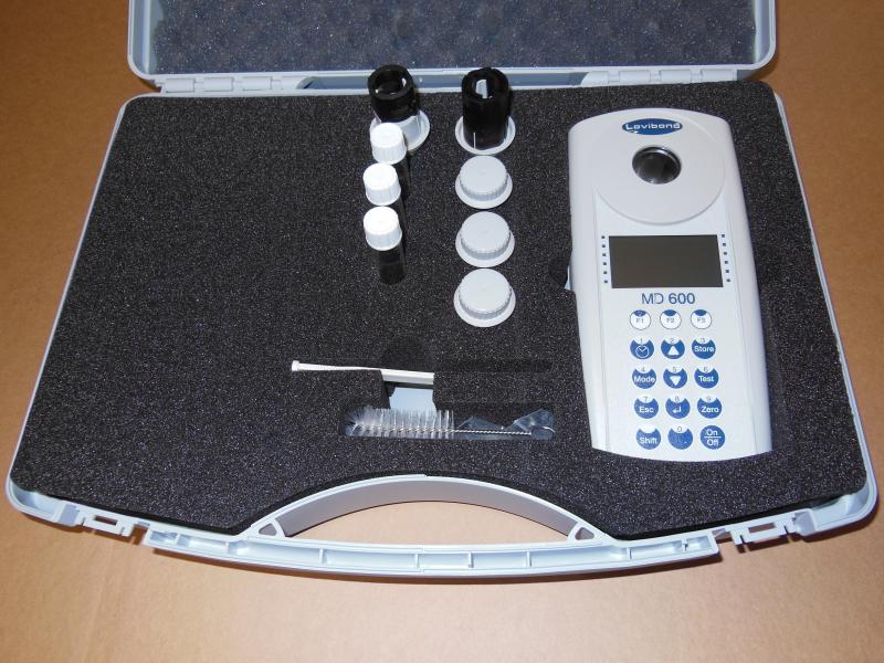 Mallette robuste en PP complète avec: Photomètre MD600, 3 cuves de tests et accessoires et réactifs pour 100 tests (rangés dans des boîtes he...