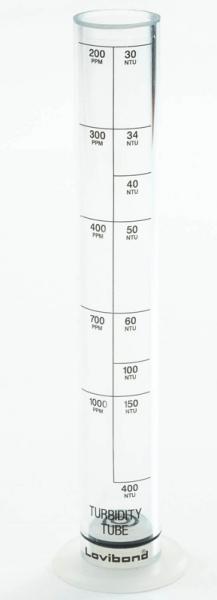 Remplir le tube tant que l'on arrive à voir les 2 cercles au fonds du tube. Lecture avec le niveau d'eau de la turbidité en PPM et NTU ...