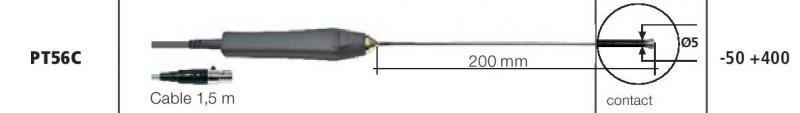 Sonde PT100 pour la mesure par contact 200 mm x 5 mm