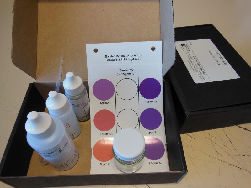 Kit DDAC (didecyldimethylammonium chloride) - Basses teneurs Gamme de mesure 0-15 mg/l de matière active DDAC Test simple par comparaison des co...